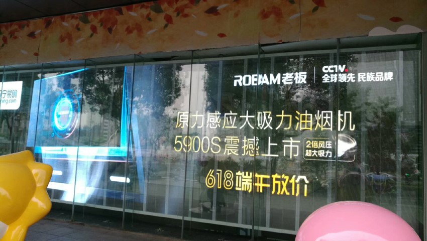 2018年5月,我公司與蘇寧云商集團股份有限公司合作,安裝完成蘇寧生活廣場上海五角場試點一塊面積30平方米的P3.9*7.8規(guī)格的LED透明屏。